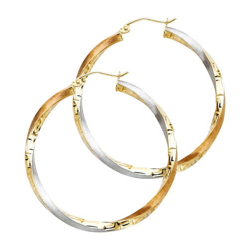 14 karat tri-tone gold loop earring
